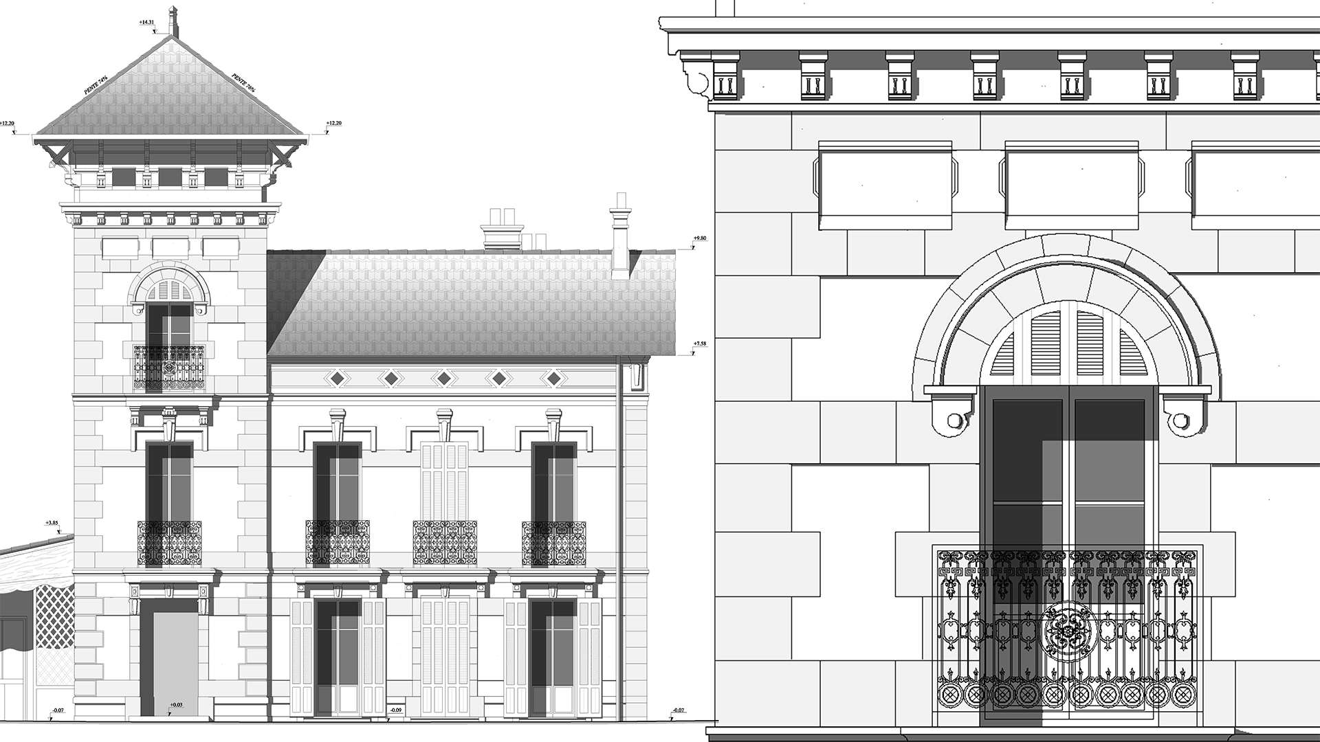 Plans de niveaux, coupes en élévation, plans de façades, détails sont prélevés et restitués à l’échelle souhaitée.